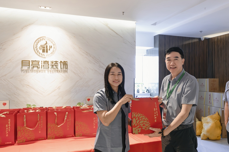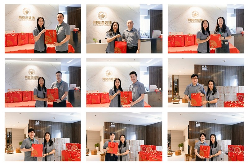 月亮湾副董事长李董将包装精美的月饼礼盒送到月亮湾的家人们手上。同事们都说:“节日氛围满,被重视的感觉很暖。” 礼盒藏着24年公装老品牌的感恩,员工凭双甲资质筑就万余家企业理想办公空间。